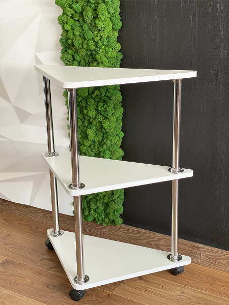 Тележка-этажерка, 3-х ярусная Белая Угловая, с металлическими трубами
