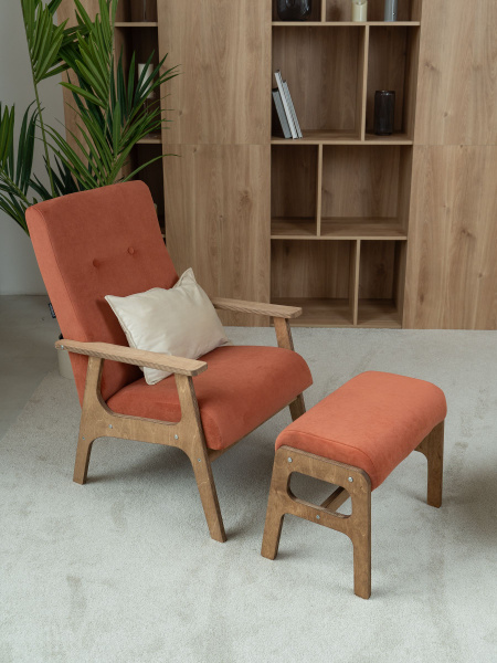 Мягкое кресло с подставкой для ног и откидывающейся спинкой