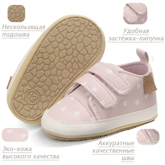 Пинетки Девочки, размер 19 Экокожа розовый Сердца Повседневный купить c