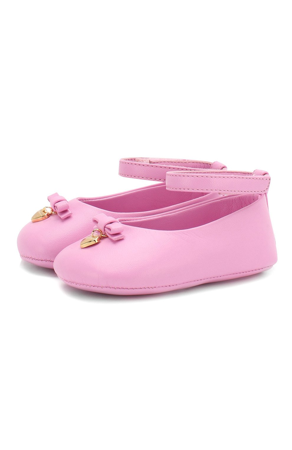 Кожаные пинетки DOLCE & GABBANA детского розового цвета