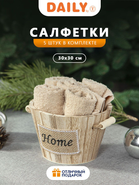 DAILY by T Полотенца кухонные набор подарочный, Новогодний в бадье