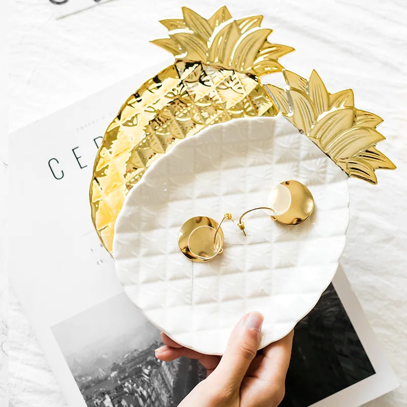 Золотой белый лист ананаса декоративная керамика тарелка для закуски