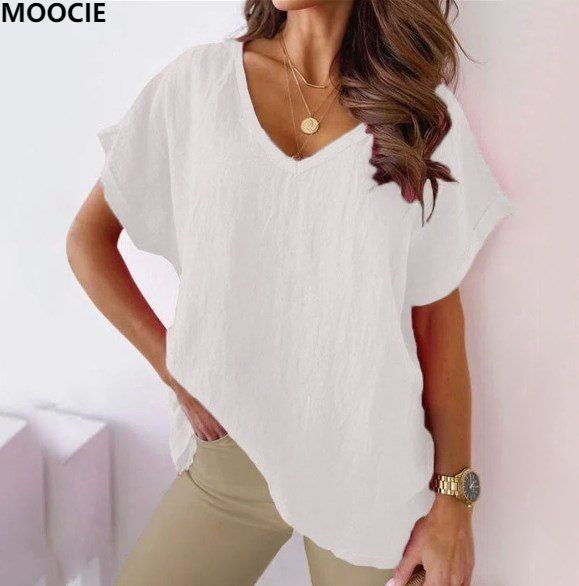 Блузка Женский белый Хлопок Короткий Однотонный, размер 52 Без застежки