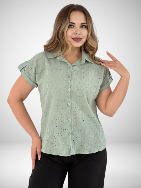 Блузка Женский фисташковый, светло-зеленый Хлопок Вышивка Короткий