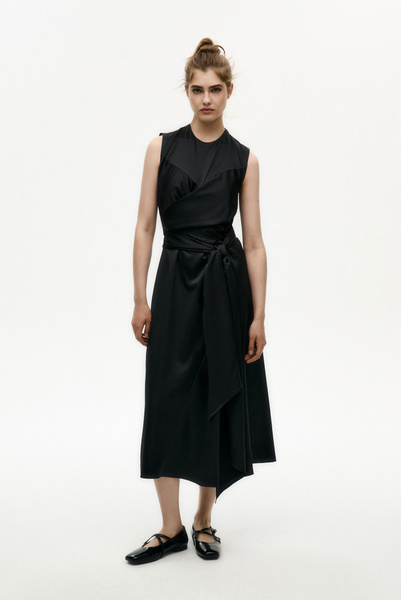 Платье женское с поясом MIST миди, размер 46, чёрный (7333356)