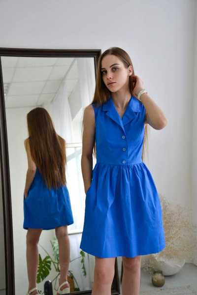 Платье прямое с воротником синее купить в интернет-магазине Morozova